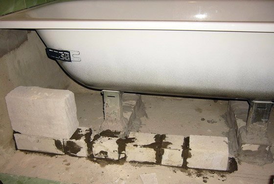 В этом варианте все очень просто. По границе ванны либо же от стены до стены, около которой стоит ванна, возводится кирпичная стена шириной в полкирпича. Непременно, как и при строительстве обыкновенной стенки, кирпич перешивается, другими словами каждый последующий ряд сдвигается на полкирпича. В месте комфортном для доступа к сливу ванны формируется окошко. Для того чтоб его прикрыть, довольно приобрести либо сделать дверцу и прикрепить на навесы.