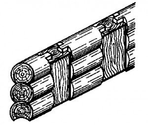 На схеме отлично видно, что бревно 1-ое должно быть размещено в кладке, прилегающей к фундаменту практически в половину поперечника, 2-ое бревно — также либо чуток меньше. Торцы обозначенных брёвен не должны находится в кладке, по другому потом может начаться их тление.